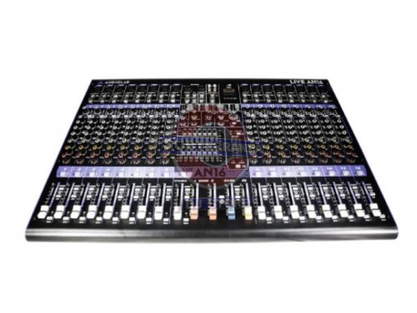 Consola Sonido Audiolab Live AN16 USB 16 Canales!!! 16 Canales Mic / Linea + 1 Canal Stereo + MP3!!! 2 Sub Grupos!!! 4 Bandas Eq Por Canal!!! Ecualizador Grafico De Salida 2 x 7 Bandas!!! Procesador Efectos DSP 24-bit Con 16 Programas!!! Reproductor MP3 x USB!!! Alimentacion: 220 VAC 50 Hz Dimensiones: 660mm x 475mm x 135mm!!! Peso: 10.8 Kg